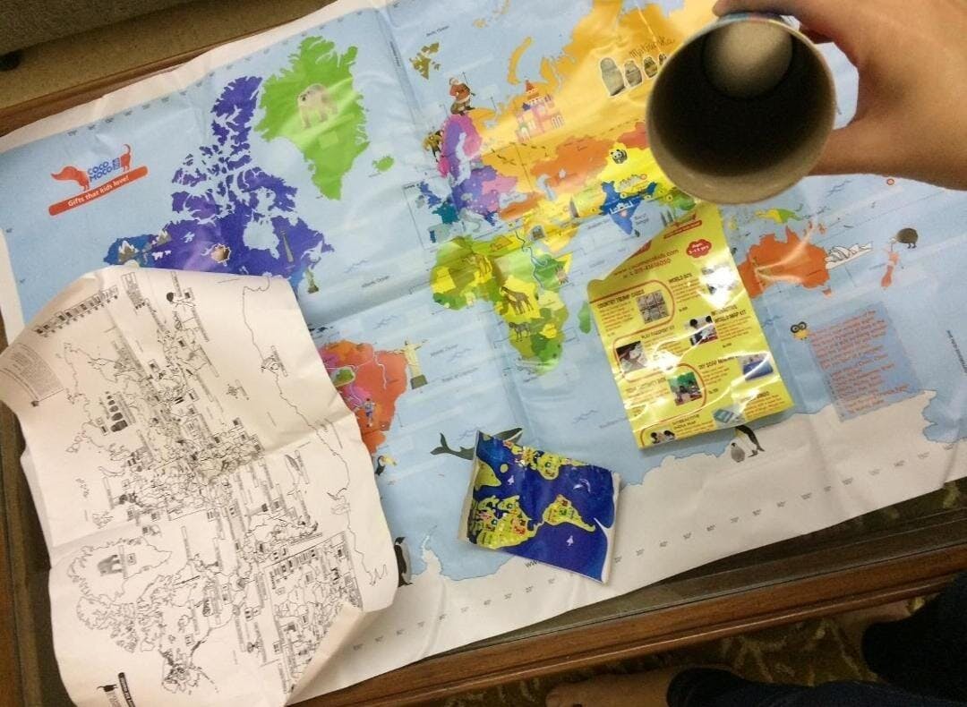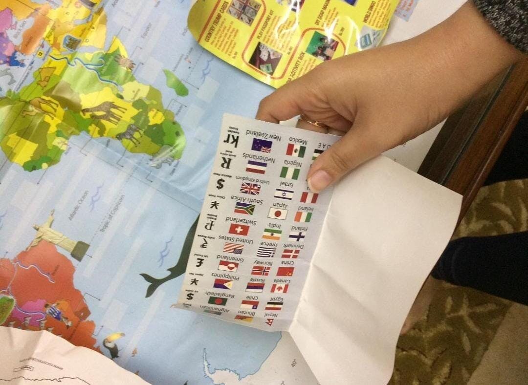 It's a wonderful world map activity but the stickers are less. It would be great if stickers are provided more. There are in total 80 stickers, including currencies, locations and flags. Overall it's great. My only suggestion is to provide more stickers with equal quantity of currency, flag and location icon.